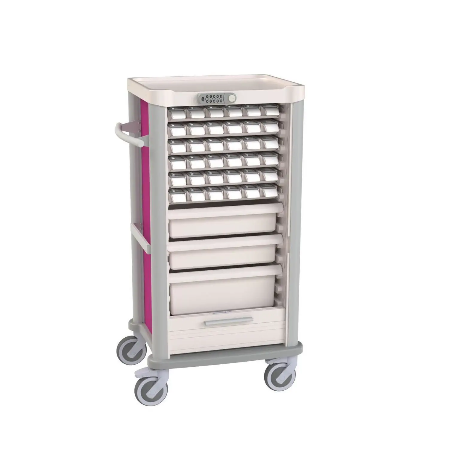 Ez a prémium minőségű kocsirendszer a legmagasabb szintű rugalmasságot kínálja az egészségügyi intézmények számára. A 14 modulos (csúszkás) belső kialakításnak köszönhetően a tárolóegységek elrendezése bármikor a napi igényekhez igazítható.