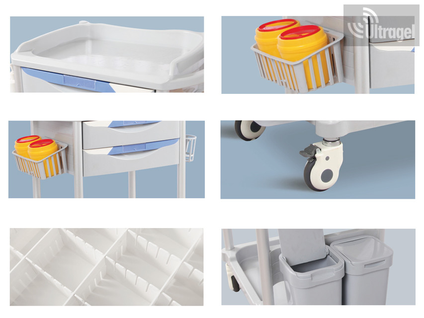 Kezelő kocsi ideális választás minden olyan egészségügyi környezetben, ahol a kompakt méret, a mobilitás és a gyors hozzáférhetőség a legfontosabb.