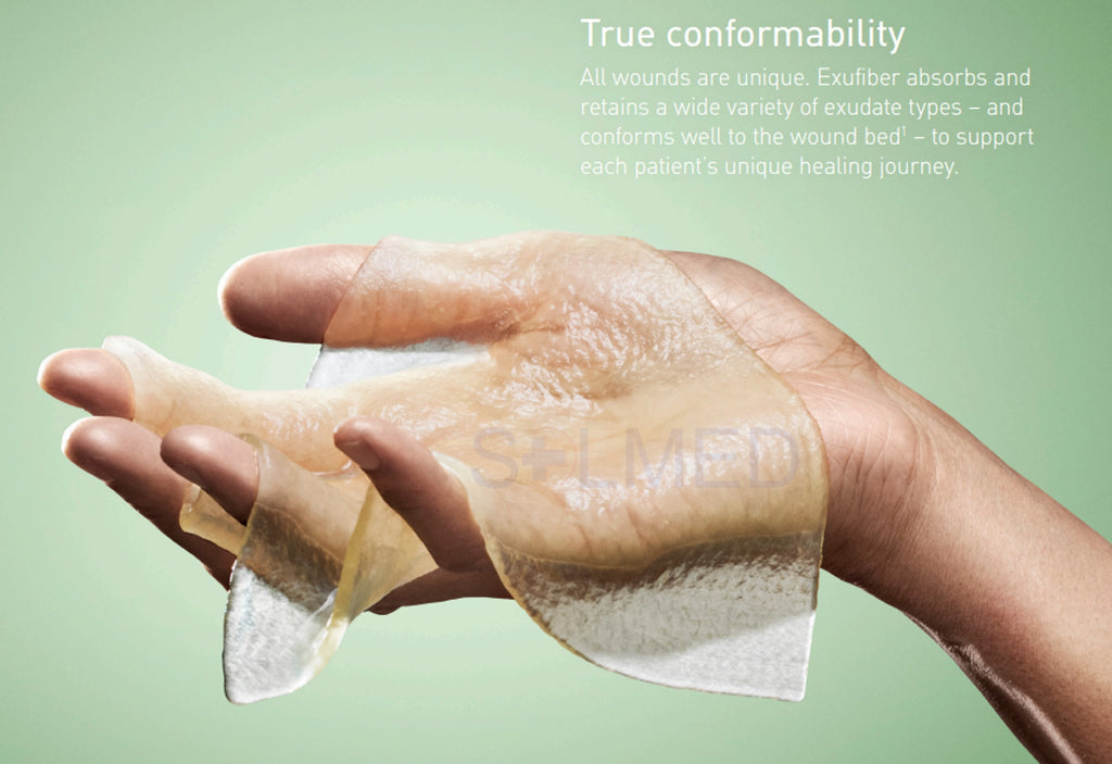 Az Exufiber egy steril, nem szőtt kötszer, amely erősen nedvszívó polivinil-alkohol szálakból készül. A sebváladékkal érintkezve az Exufiber Ag+ géllé alakul át, amely megkönnyíti a nedves sebgyógyulást és a kötéscsere során a könnyű eltávolítást.