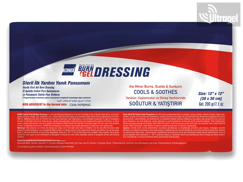A Konix® hidrogéllel átitatott steril égési kötszer elengedhetetlen kelléke minden professzionális és háztartási elsősegélynyújtó felszerelésnek. Speciális formulájának köszönhetően azonnal enyhíti a fájdalmat, hűti a sérült területet, és fizikai gátat képezve megakadályozza az égés továbbterjedését a bőr mélyebb rétegeibe.