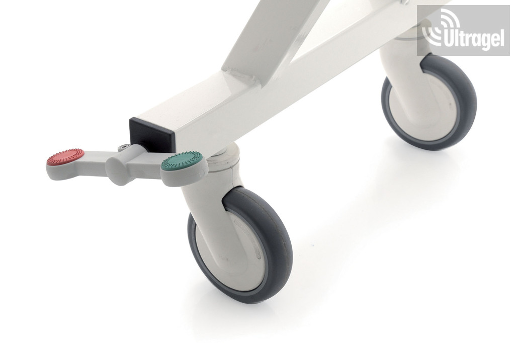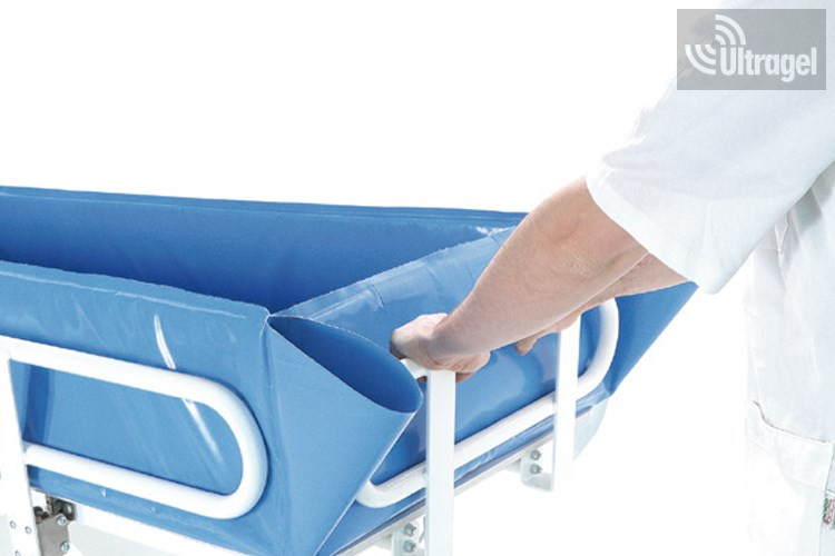 Praktikus kiegészítők: 180°-ban elfordítható oldalfalak a könnyű átemeléshez, strapabíró PVC párnázás ftalátmentes poliészterrel, teljes fékes Ø125 mm görgők és hajlékony leeresztőcső.