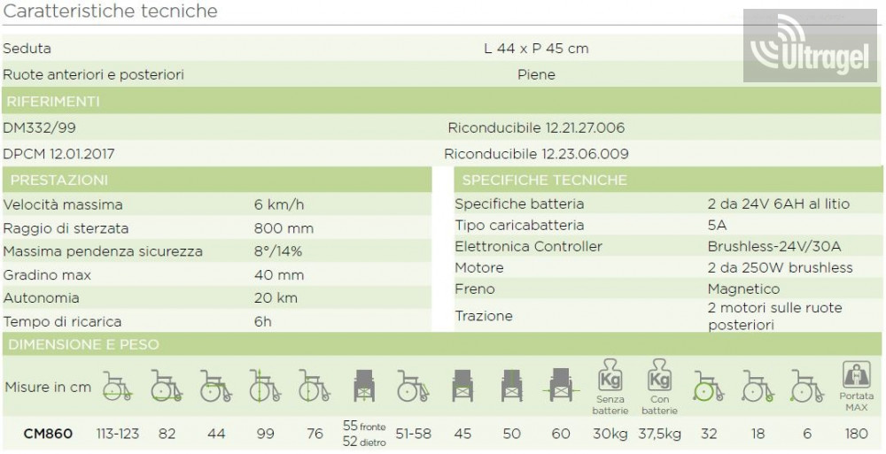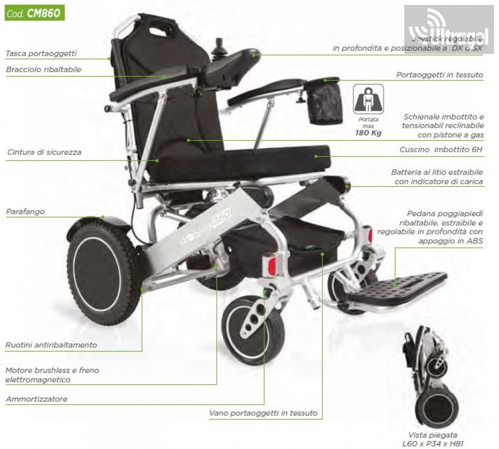 Az olasz Moretti gyártmányú elektromos kerekesszék a MOBILITY 860 praktikus, hatékony és kiváló teljesítményű.