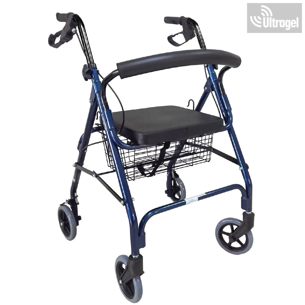 Rollátor párnázott deréktámasszal és fém kosárral