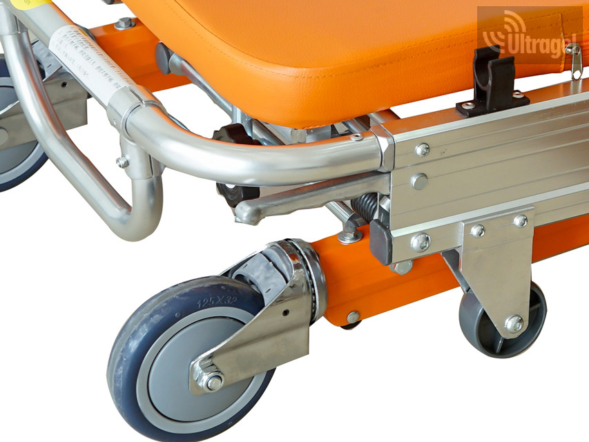 Lockable operating position, when the stretcher is removed from the vehicle, the left and right control levers release the front and rear legs in an orderly manner, allowing the stretcher to fold when loaded.