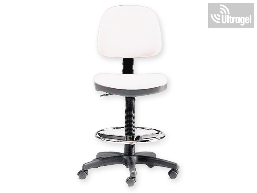 Orvosi szék, forgószék krómozott lábtartó gyűrűvel - fehér műbőr kárpitozással